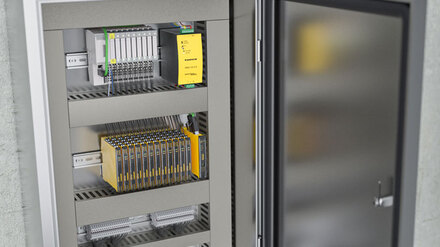 The IM18-CCM records and analyzes condition data in the control cabinet and communicates with IT networks via Ethernet